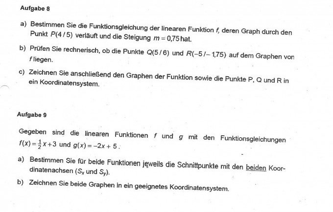 Lineare Funktionen Geradengleichungen